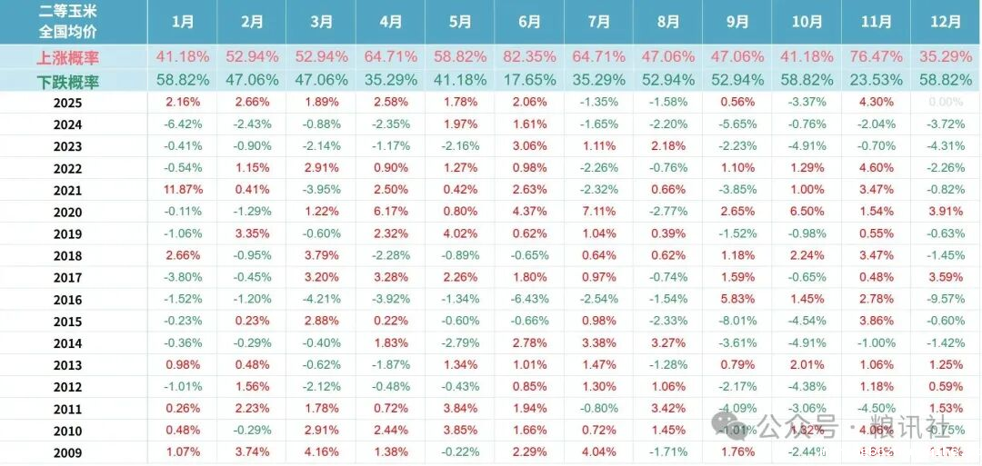 12月:历史下跌概率58.82%,但2025年这一规律将失效——传统“集中售粮+资金回笼”压力,被结构性供给缺口对冲。